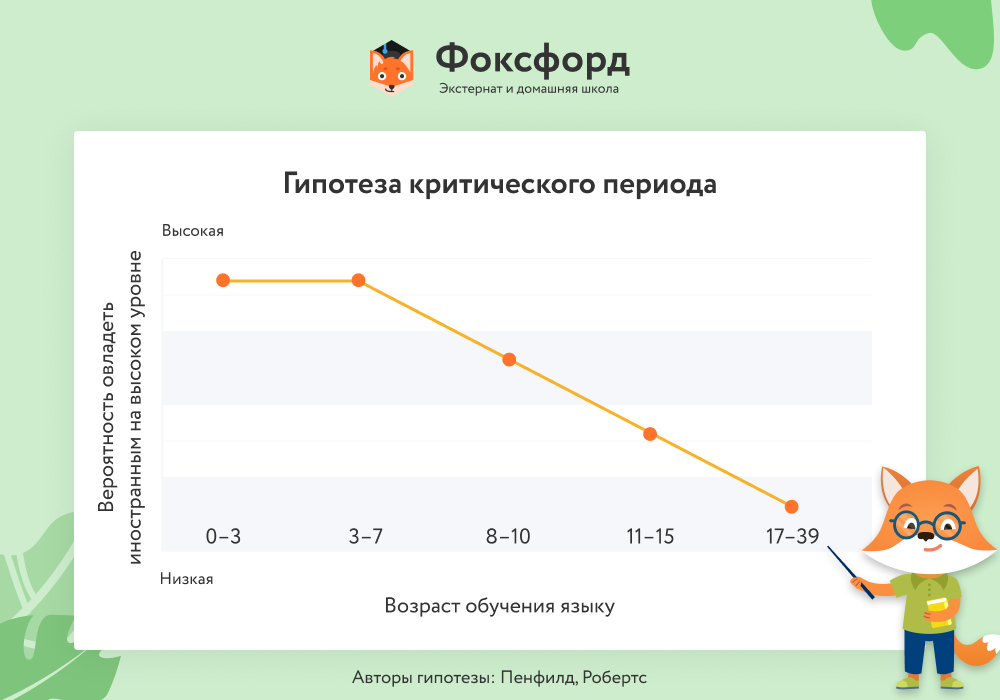 До семи лет легче всего овладеть иностранным языком на высоком уровне. После способности к изучению снижаются из-за изменений в мозгу ребёнка. Кроме того, мышцам артикуляционного аппарата становится труднее перестроиться и начать воспроизводить непривычные звуки и интонации.