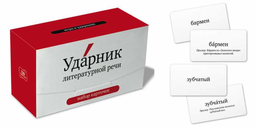 В игру вошли 120 слов русского языка, в которых часто неправильно ставят ударение. На лицевой стороне каждой карточки приведено слово, в котором необходимо выбрать верную ударную гласную и, перевернув карточку, проверить себя или другого участника игры.