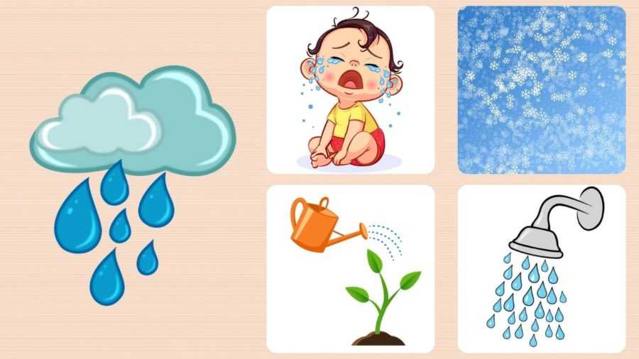 Дождь? — на слезы, полив из лейки, рассыпающиеся бусины, падающий снег, душ;