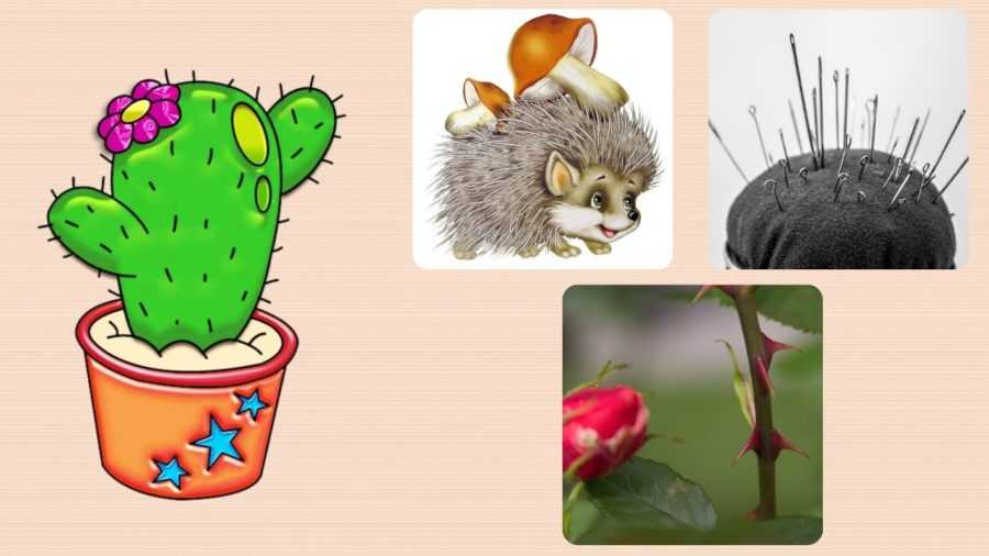 Кактус? — на ежа, игольницу со швейными иголками, розовый куст с шипами;