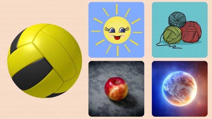 На что похож мяч? — на клубок ниток, планету, теннисный волан, солнце, колесо, яблоко.
