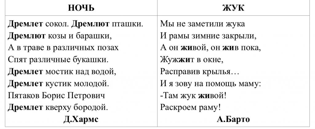 Например, в стихотворении Д.Хармса найти слово «дремлет» (число не имеет значение). Варианты этого задания могут быть разными: