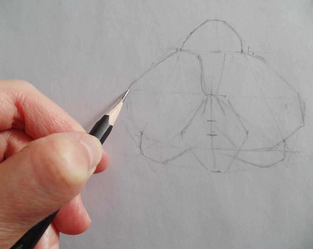 Позвоночник — основа всей фигуры, его можно наметить изогнутой линией. Крупные суставы плеч и таза схематично изображаются кружочками. Линии эскиза проводятся легко, без нажима.
