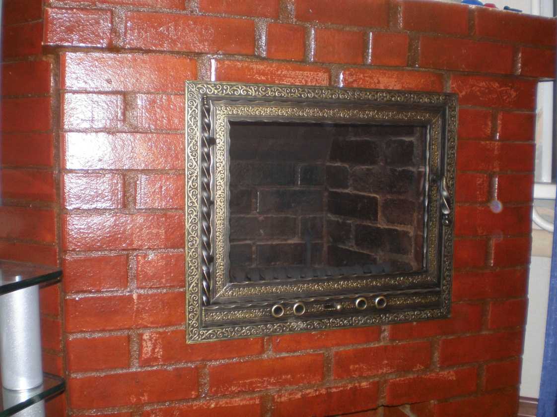 Интересное решение для фиксации заслонки — в кладку чела печи заложены скобы, за которые зацепляется заслонка устья.