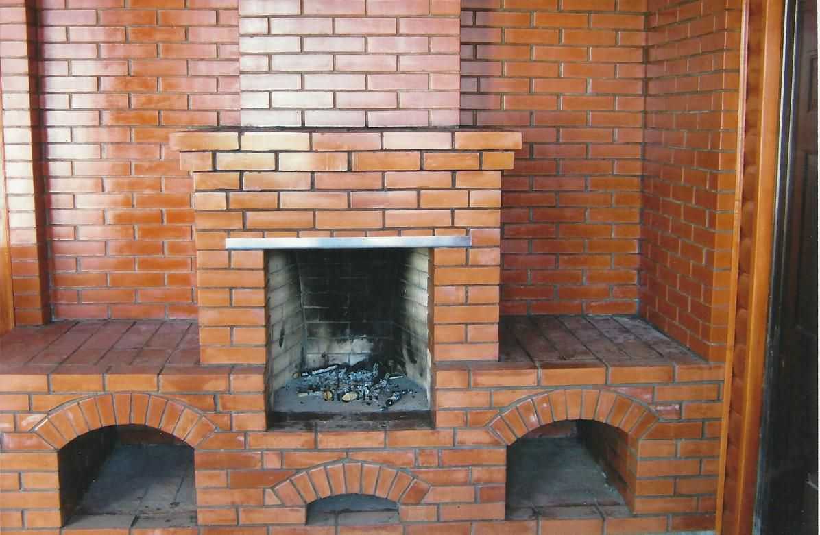 Открытый с двух сторон шесток, массивные стенки, конический дымосборник…