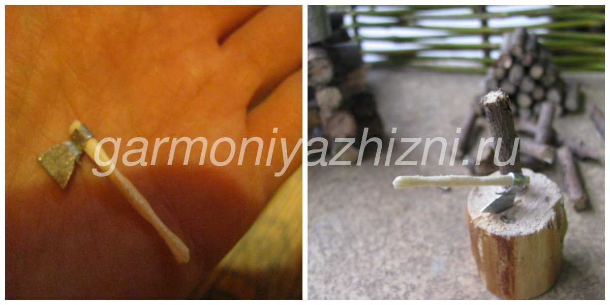 Ювелирная работа из спички выточить топорище, я даже немного нервничала, что муж так скурпулёзно подходит к обычной , на что он ответил: «Всё должно быть приближено к реальности как можно больше». Сделал столбик где якобы рубятся дрова, «наколол» немного дровишек), топор вставили в полено, ну один в один настоящий топор в миниатюре).