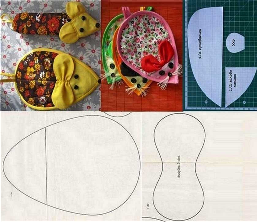 Украсить кухню можно красивыми прихватками. Такое изделие будет функциональным и компактным, петелька у основания позволит подвешивать его на крючок. Пошить прихватку в виде мыши можно, используя шаблон для выкройки на картинке 4.