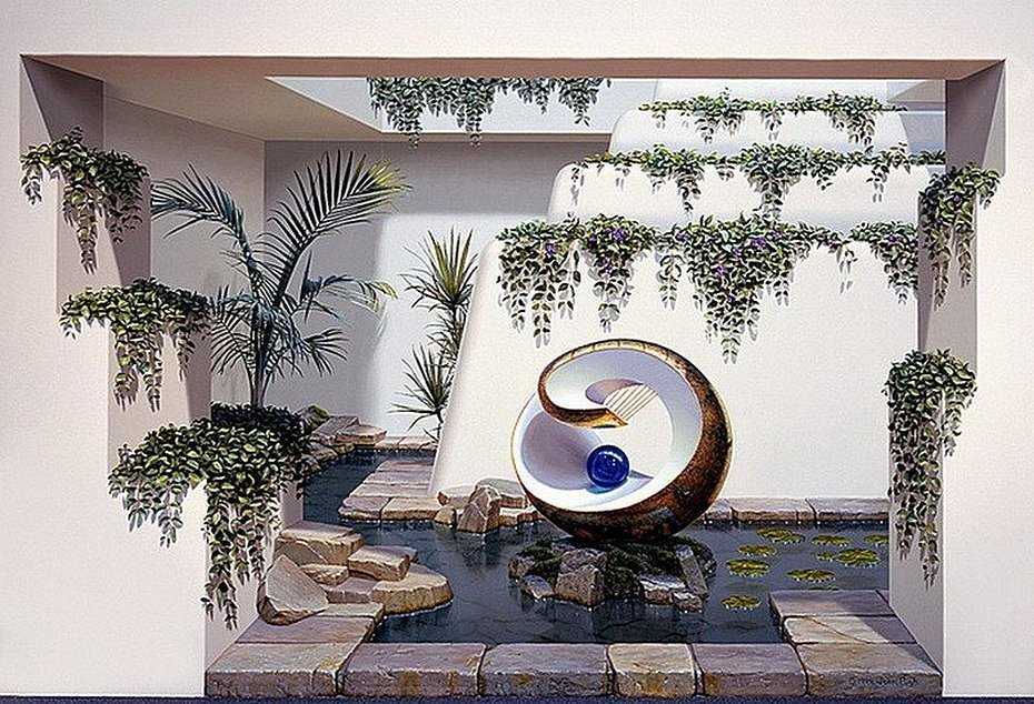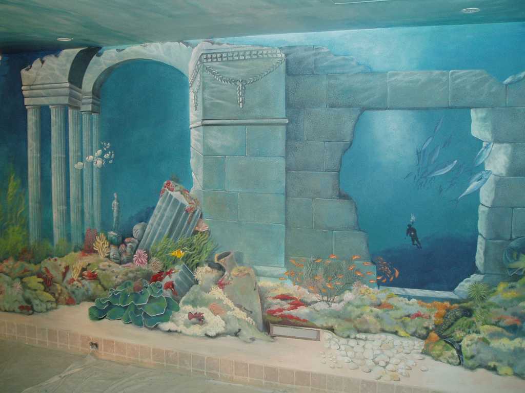 3D рисунки на стенах с каждым годом все больше становятся популярными. Такой метод позволяет оживлять комнату различными эффектами. При помощи такой технологии можно имитировать стекло, камни, деревья, ткани. 3д рисунки можно создавать на стенах, потолках и полах.