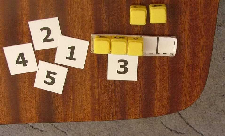 Использование обучающих карточек и палочек. Можно выкладывать их по одной на стол и называть цифры, потом сдвинуть одну часть палочек вправо, а другую — влево и спросить, сколько палочек в каждой части.