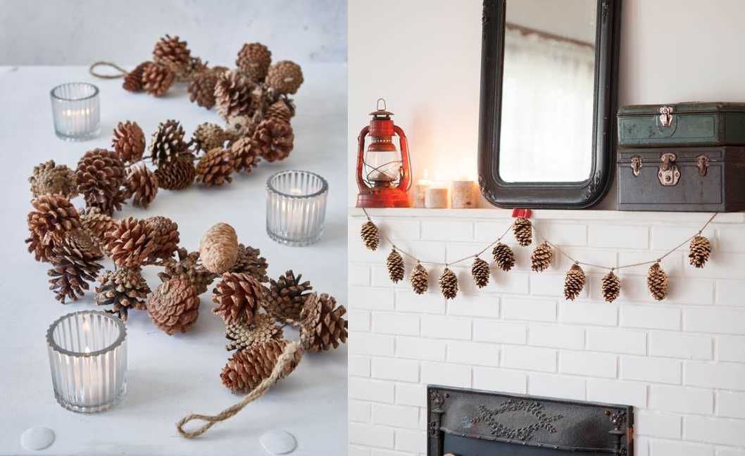 Огромное количество различных новогодних поделок можно изготовить из шишек. Воспользуйтесь фантазией и начните с маленьких композиций деда мороза или елки, и продолжите украшение интерьера панно или гирляндой. Наполните дом сказочной атмосферой.