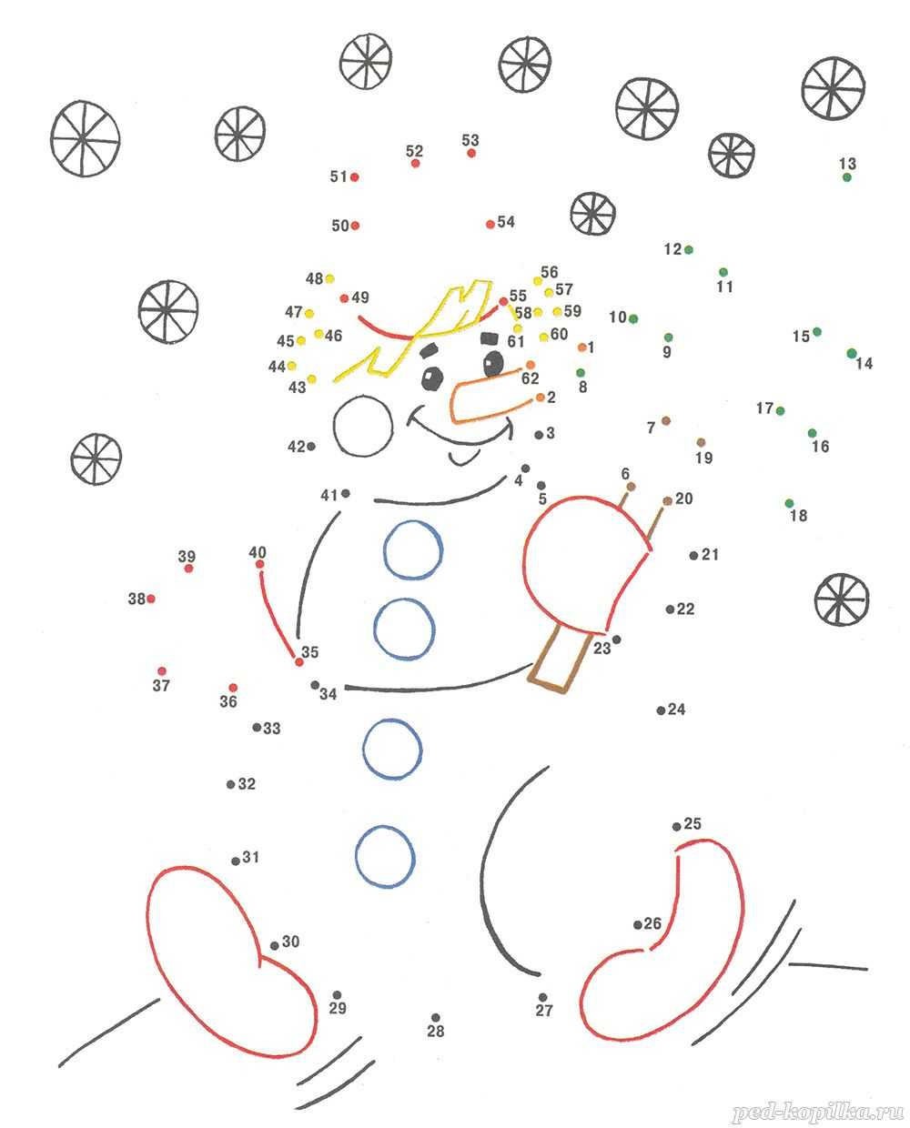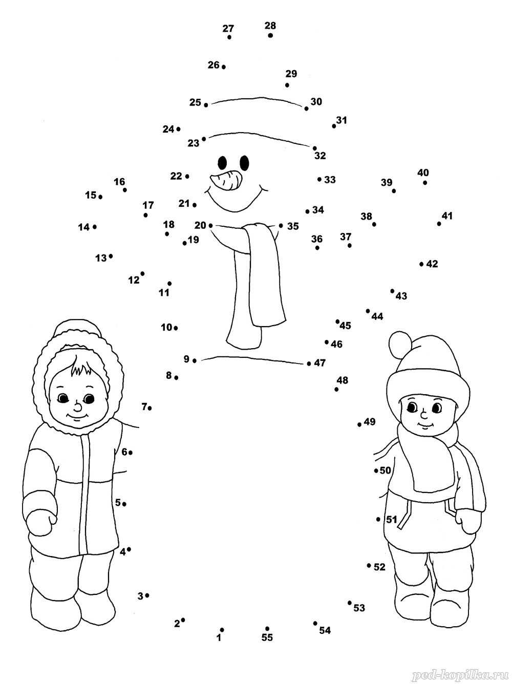 Соедини точки по порядку – и увидишь, кого ребята слепили из снега.