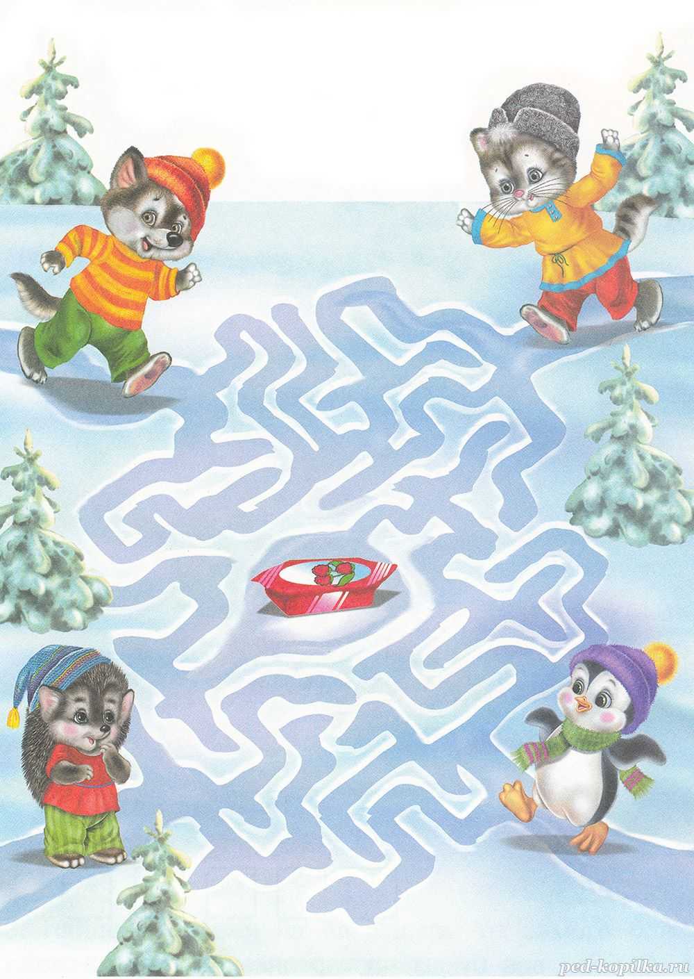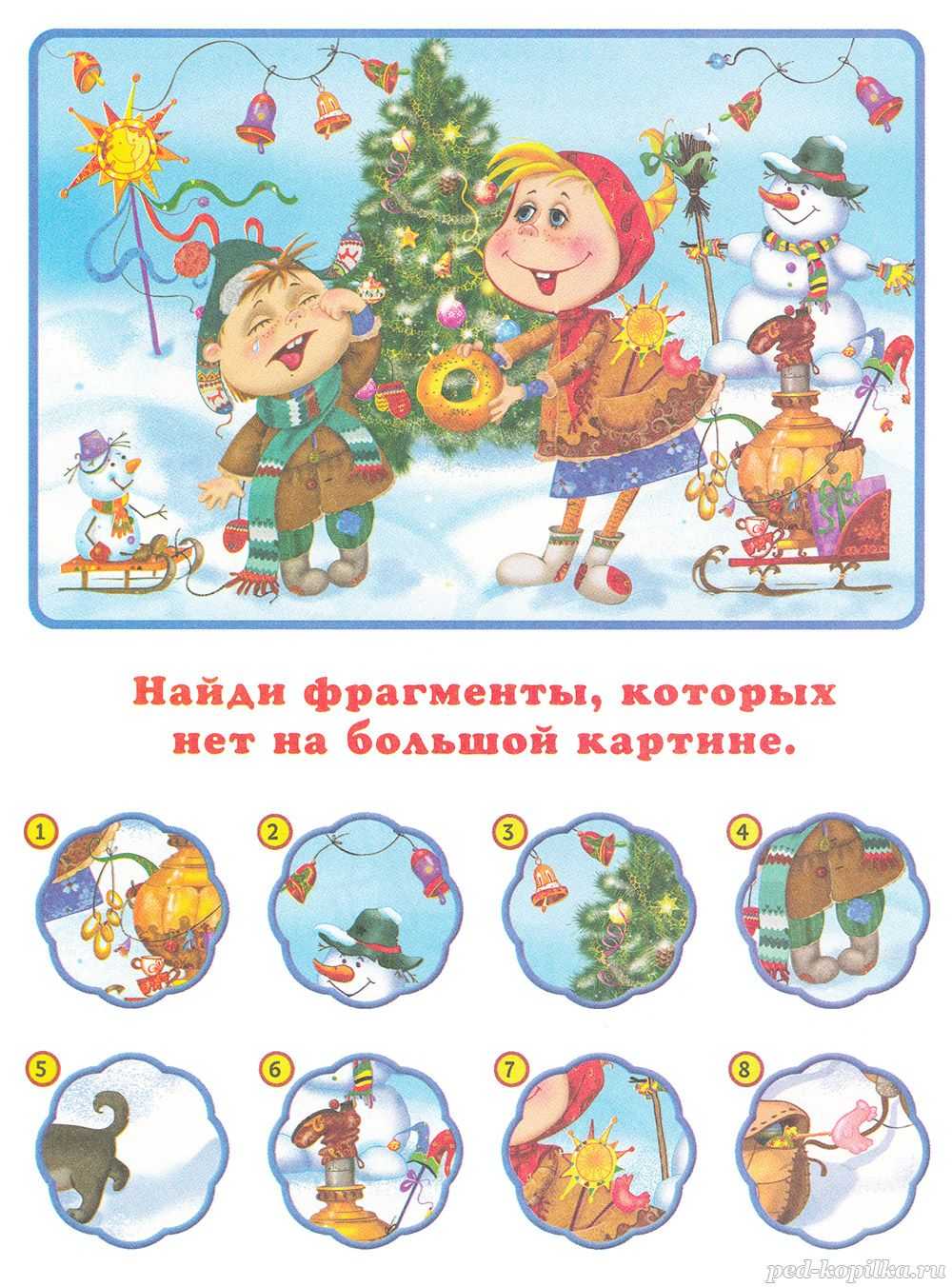 Развивающие задания в картинках на зимнюю тематику для старших дошкольников