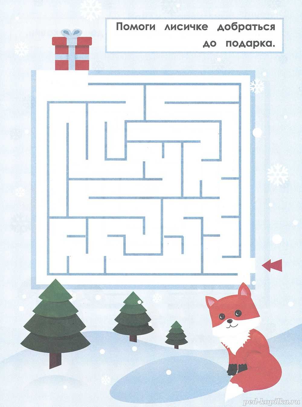 Лисёнка нужно спасать! Помоги Снегурочке и бельчонку пройти лабиринт и выручить друга.