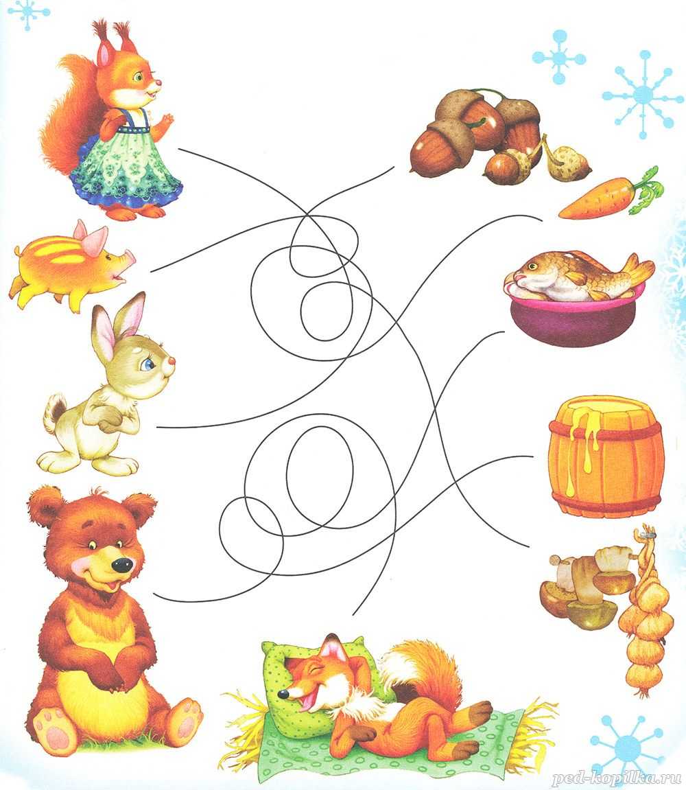 Дед Мороз привёз зверушкам гостинцы! Пройди по линиям, и узнаешь, кто какие лакомства получил