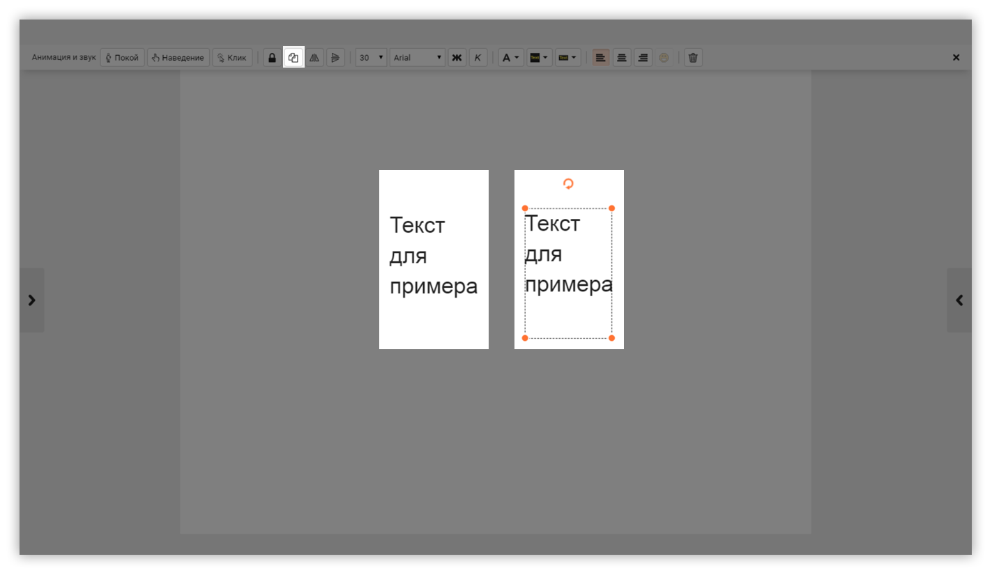Нажмите на текст. На верхней панели нажмите на значок «Копировать объект».
