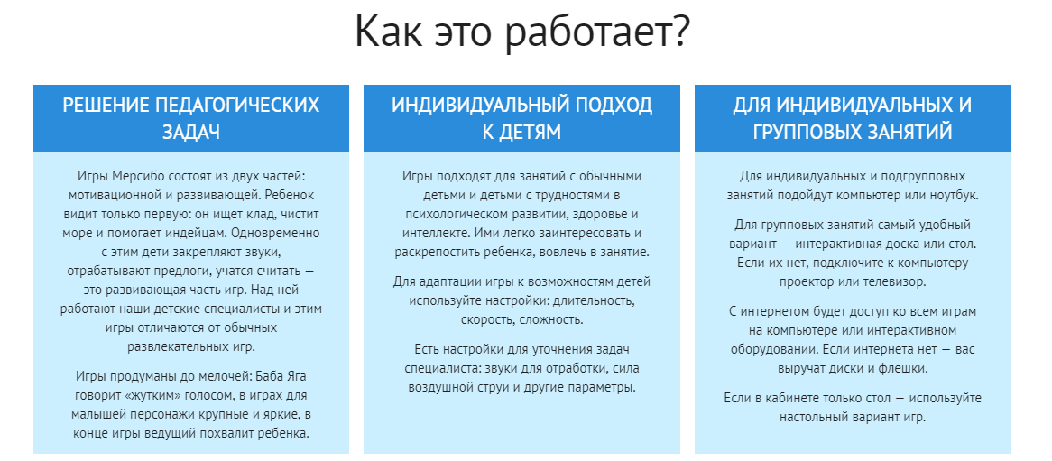 Педагогические задачи с помощью онлайн-игр Мерсибо решаются грамотно и профессионально. В создании той или иной игры есть две части: открытая детям – мотивационная и скрытая от них – развивающая.