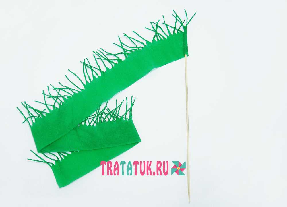 Затем наматывайте эту лохматую ленточку на палочку, с каждым витком опускаясь чуть ниже.