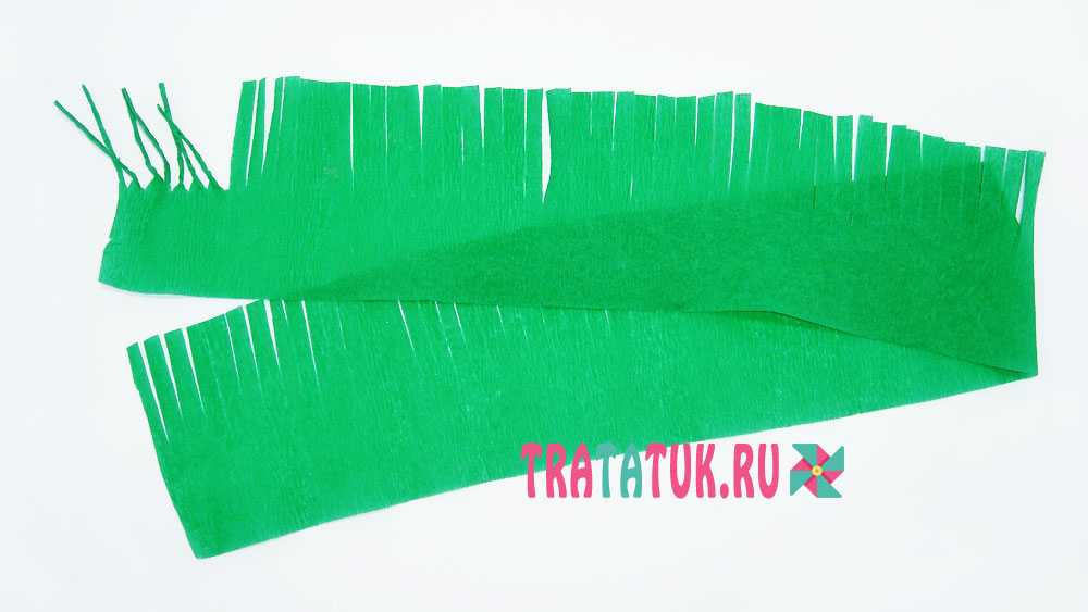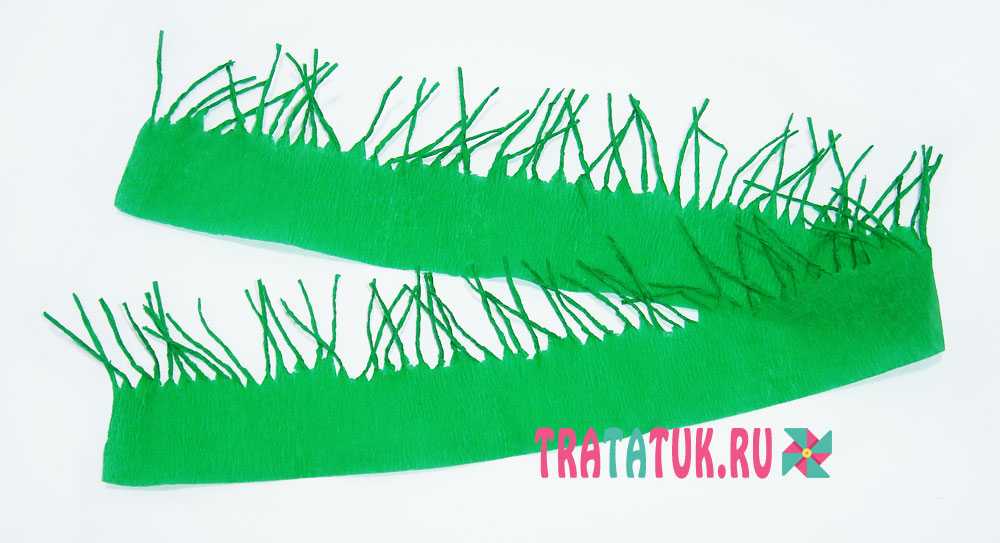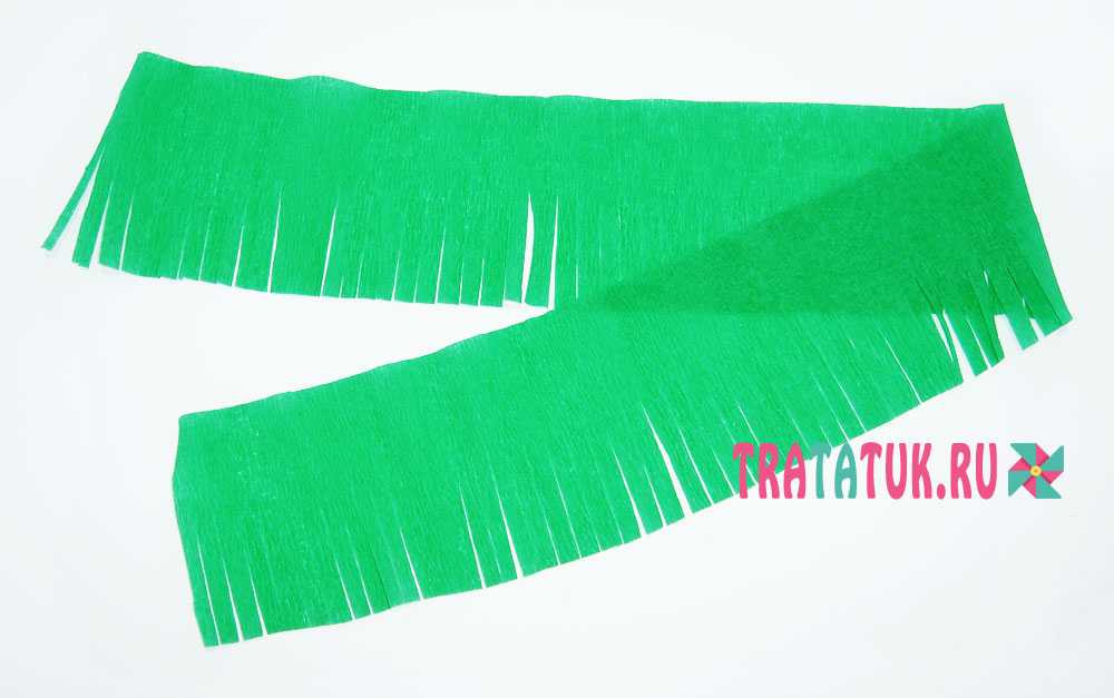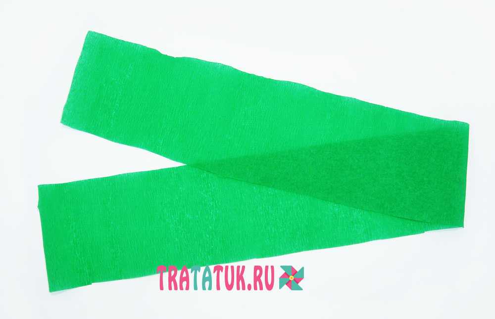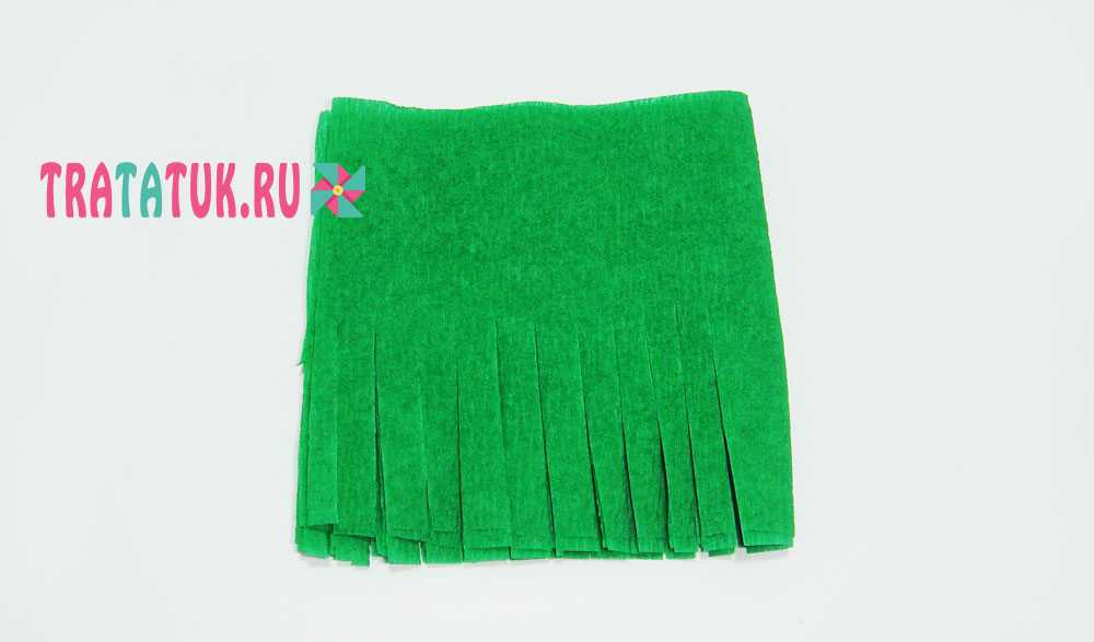 - Приступаем к изготовлению еловой ветки. Берем отрезок зеленой гофрированной бумаги.