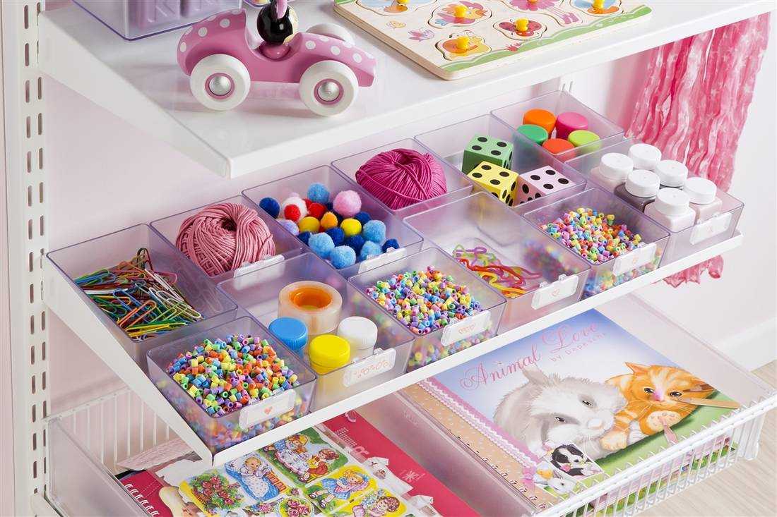 - самое высокое место и непрозрачные емкости отдайте для игр, которые вы хотите держать под своим контролем, например, лепка, рисование, мелкие и острые детали.