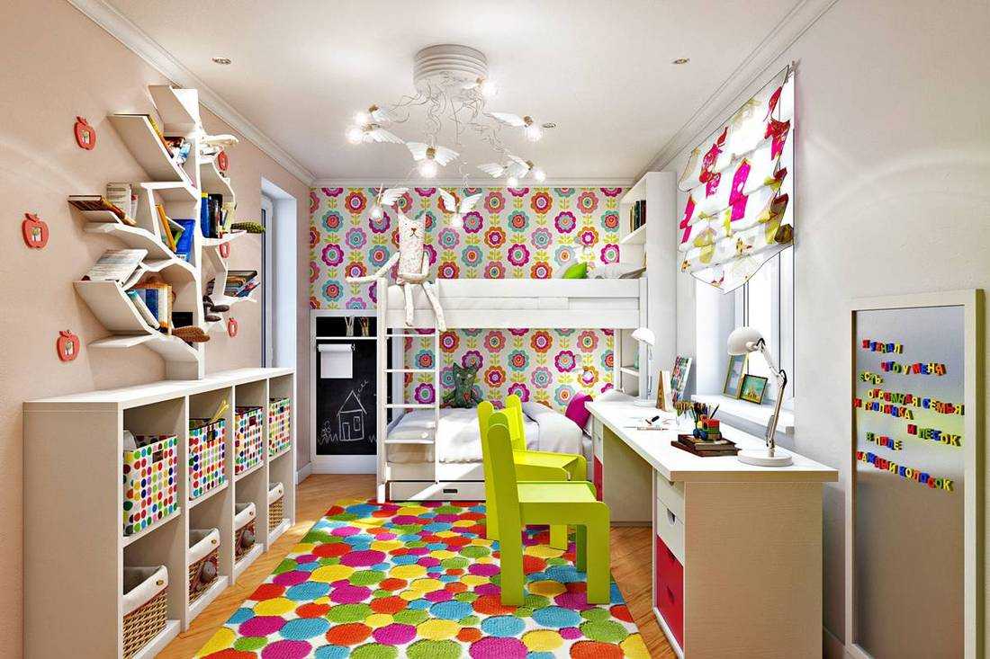 - в узкое помещение можно поставить двухъярусную кровать. Такие комнаты лучше оборудовать модульной мебелью, родители самостоятельно подберут необходимые предметы, и в детской не будет ничего лишнего;