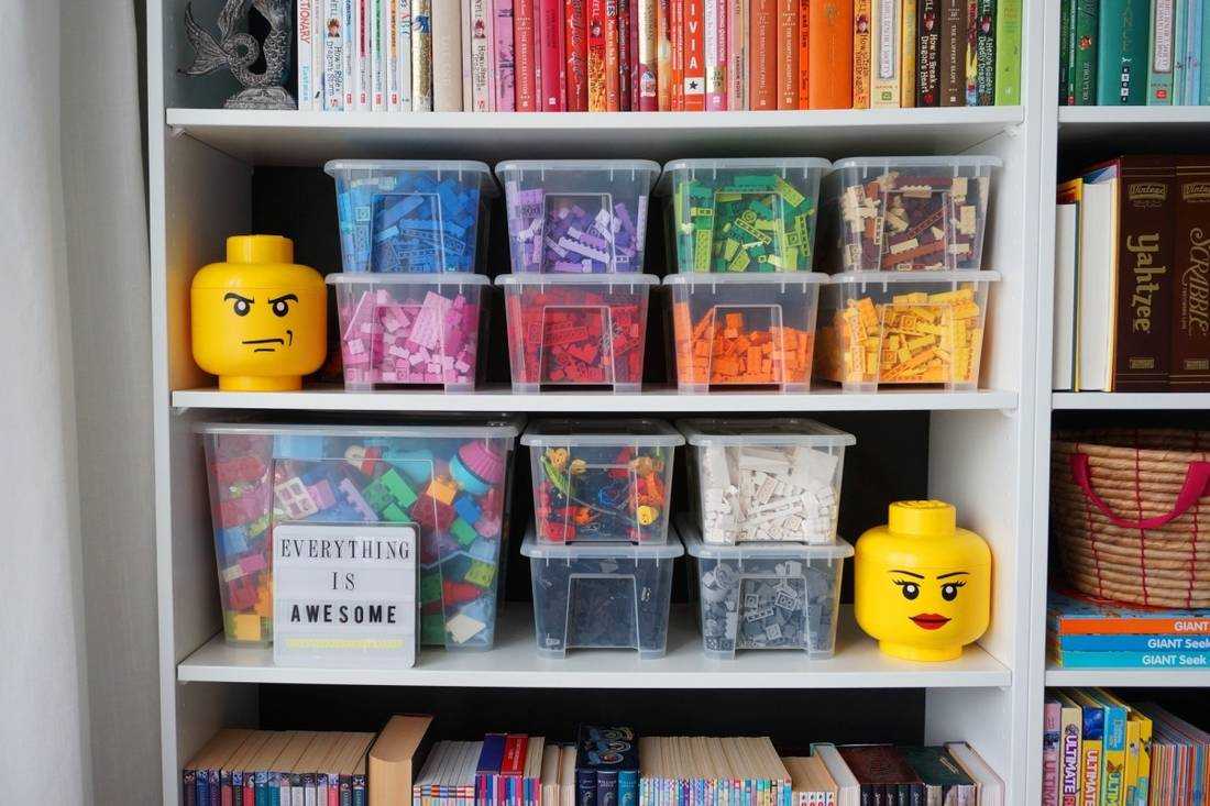Ваш малыш строитель и обожает лего – тогда для вас придуманы специальные лего-хранилища (ящики с крышкой-столом). При желании вы можете и сами рассортировать детали конструкторов как будет удобно (для мелких запчастей используйте широкие контейнеры с низкими бортами или можно воспользоваться чемоданчиками для шурупов/гвоздей; для кубиков по крупнее и контейнер нужен побольше). Также для хранения лего-деталей можно воспользоваться вертикальным хранением, для этого штабелируем контейнеры друг на друга.
