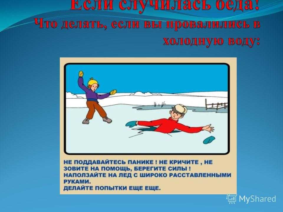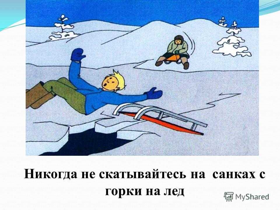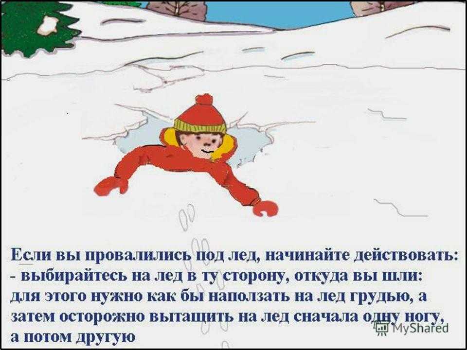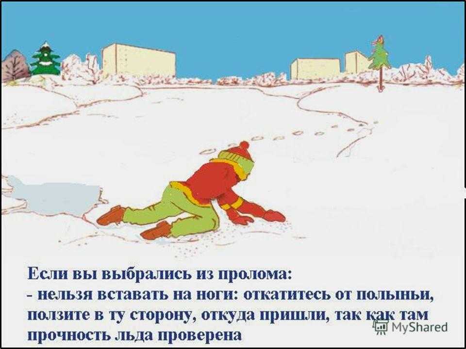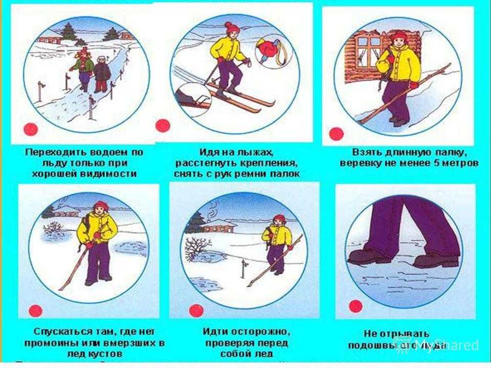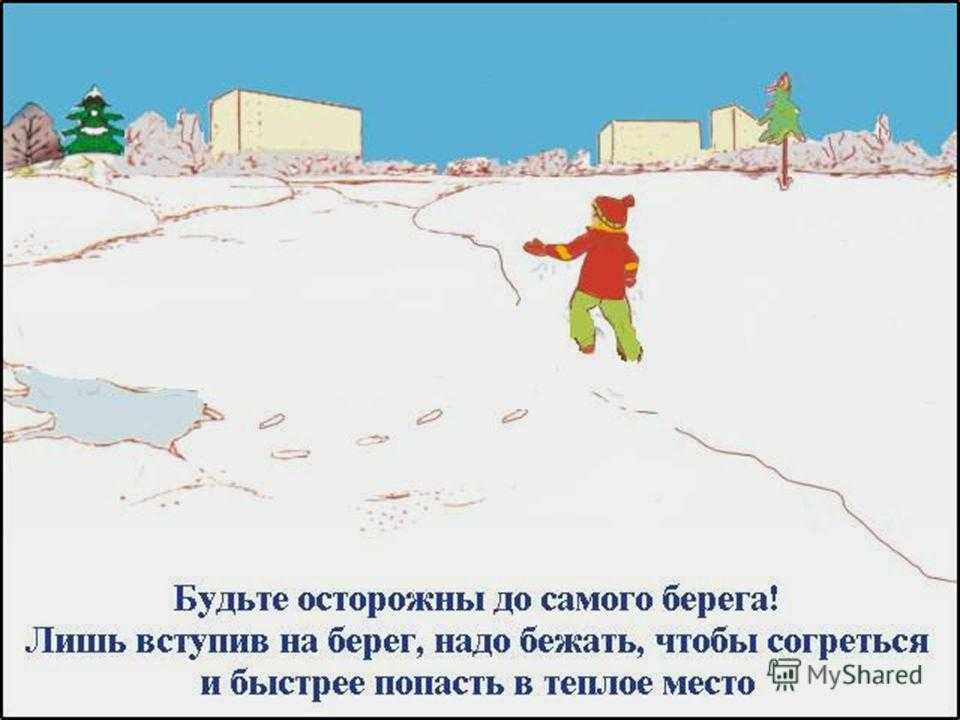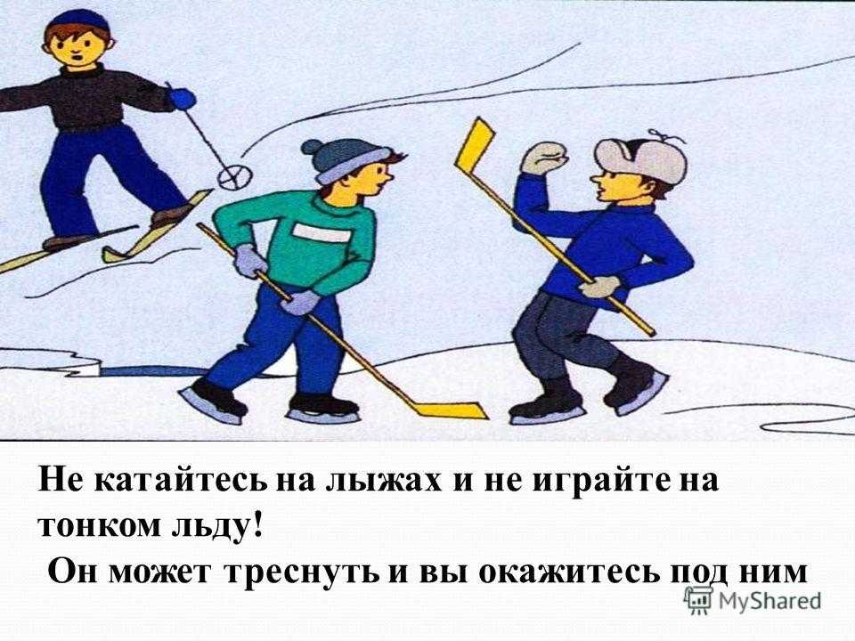Не катайтесь на лыжах и не играйте на тонком льду! Он может треснуть и вы окажитесь под ним