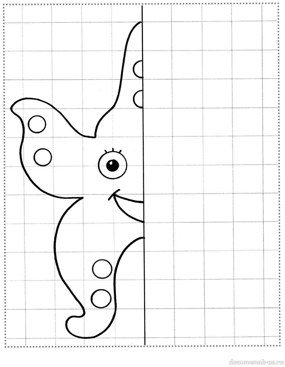 №23. Дорисуй по клеточкам вторую половину морской звезды, потому что эти удивительные существа легко умеют восстанавливать все свои потерянные лучики.