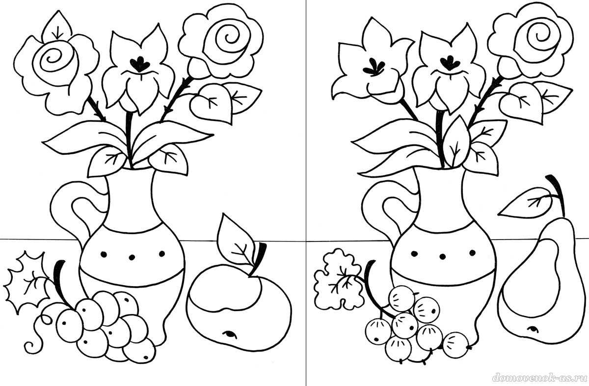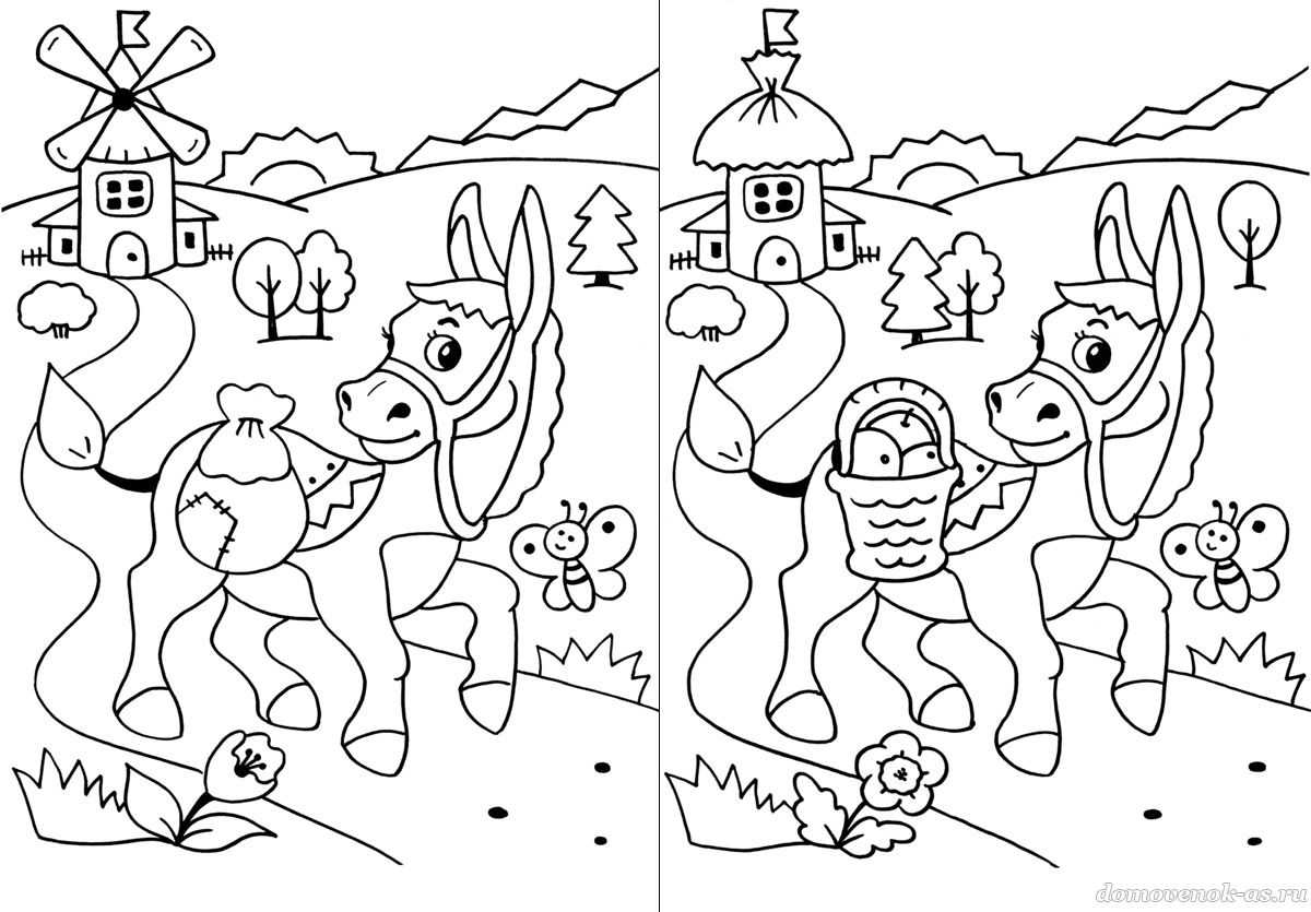 Найди отличия, а затем раскрась их.