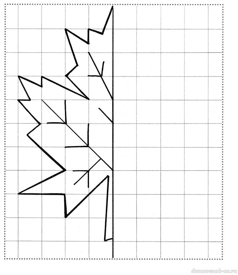 Дорисуй справа вторую половинку листочка и раскрась его в осенние цвета.