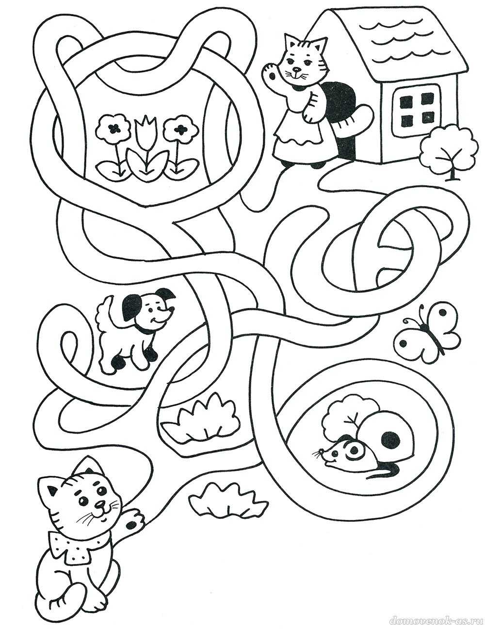 Пройди лабиринт и помоги котёнку попасть домой.