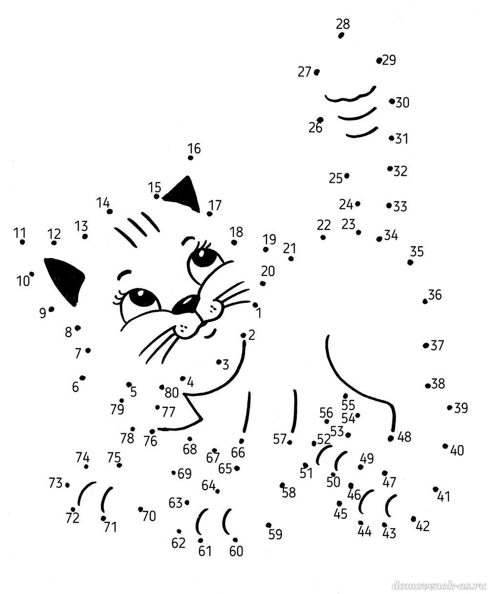 Обведи котёнка по точкам, следуя за цифрами по порядку.