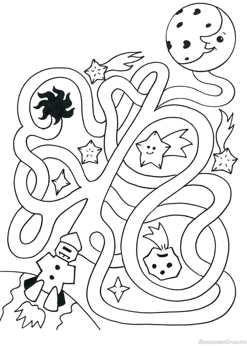 Пройди космический лабиринт, чтобы попасть на Луну – естественный спутник Земли, который движется вокруг неё.