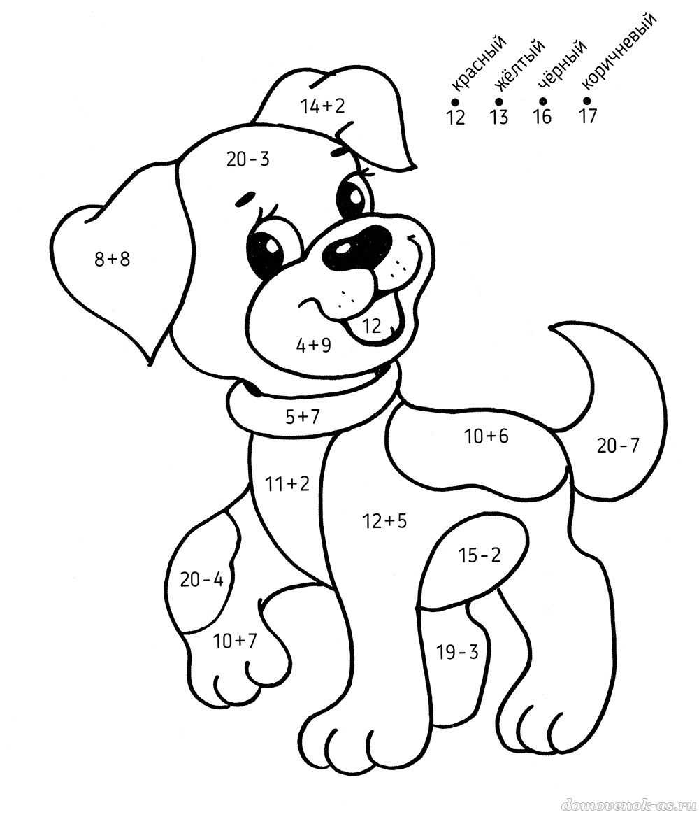 Реши примеры и раскрась шёрстку в нужные цвета!