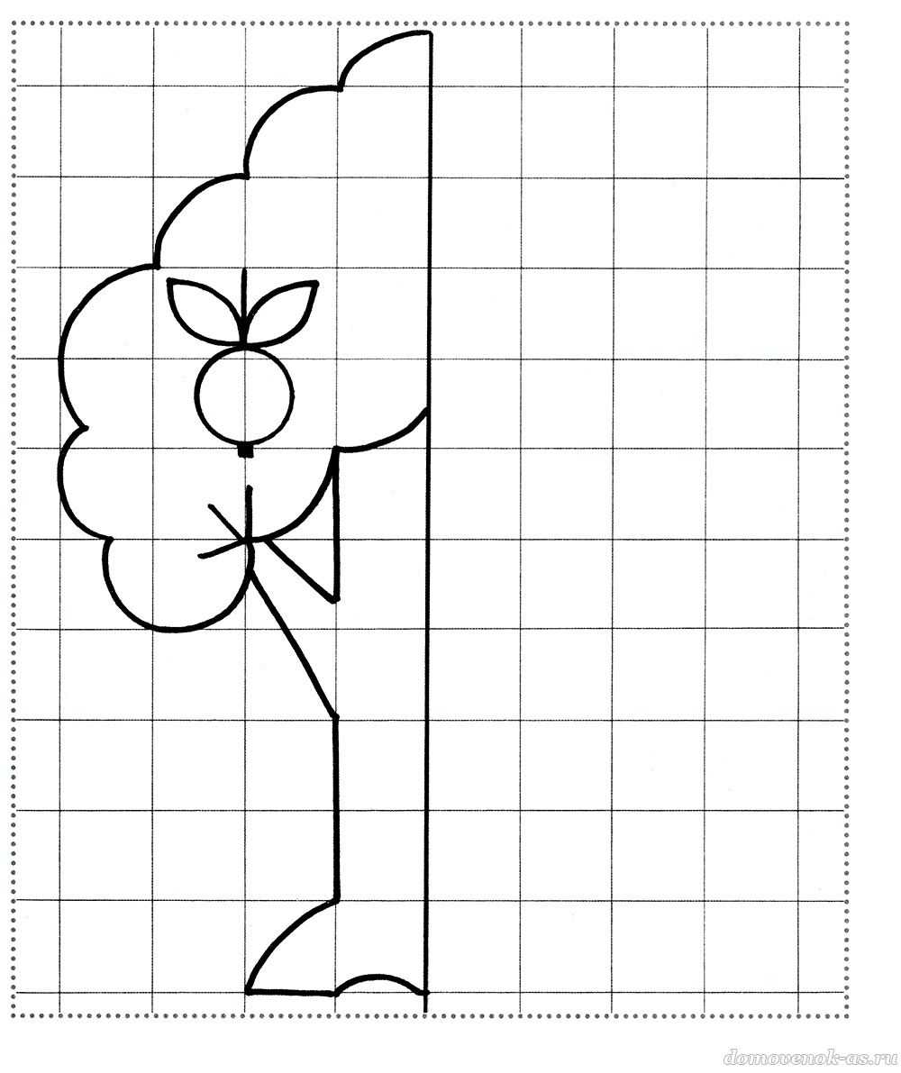 Дорисуй вторую половинку дерева, а затем раскрась рисунок.