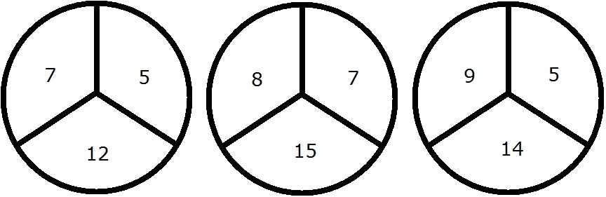 Число в нижнем секторе — сумма чисел в верхних секторах.