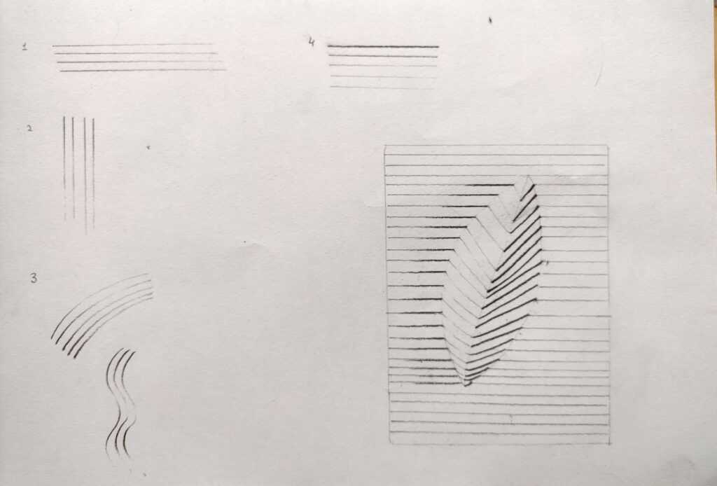 Чтобы научиться проводить красивые линии нужно их проводить. Но взрослому человеку трудно заставить себя разлиновывать от руки листы А4, как делают ученики художественных школ. Поэтому я предлагаю вам выполнить графическую композицию, состоящую только из линий одинаковой толщины.