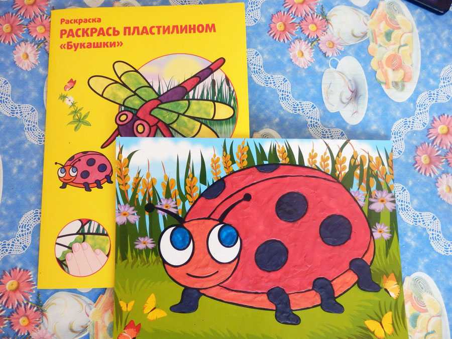 Ребенок отщипывает маленький кусочек пластилина, катает шарик и прикрепляет его на заготовку. Это может быть елочка, божья коровка или коричневый картон, имитирующий землю. Пластилин, в таком случае, — новогодние игрушки, черные точки или упавшие осенние листья.