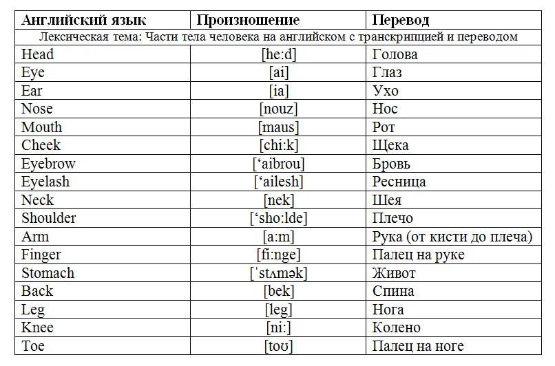 | Foot — feet | Стопа — стопы |