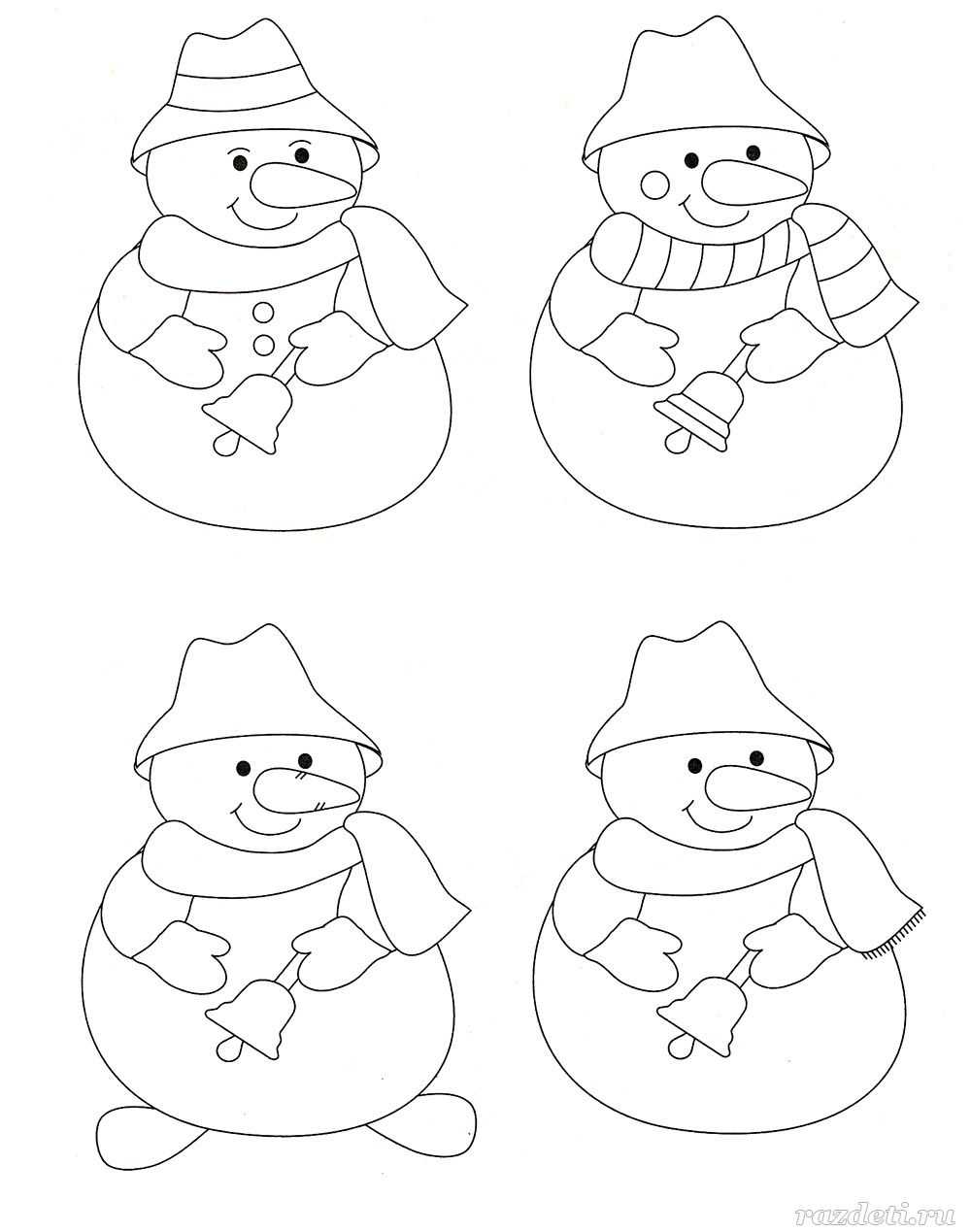 №6. Дорисуй снеговиков так, чтобы они стали одинаковыми.