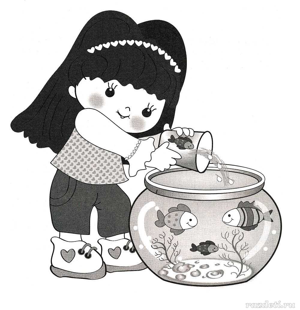 5. Девочка стоит справа или слева от аквариума?