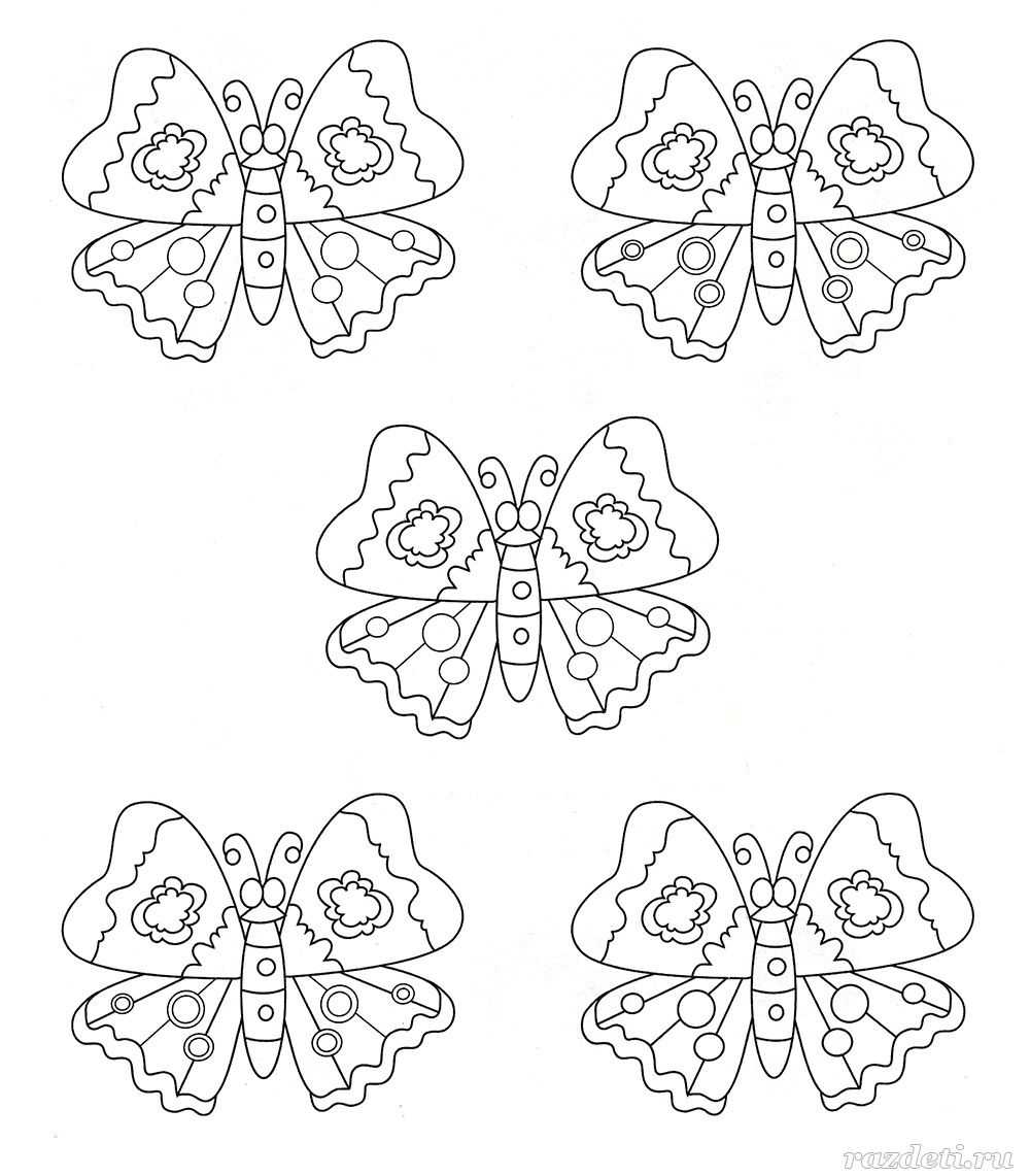 №12. Внимательно рассмотри картинку. Объедини в пары одинаковых бабочек – проведи соединительные линии. Обведи бабочку, у которой нет пары.