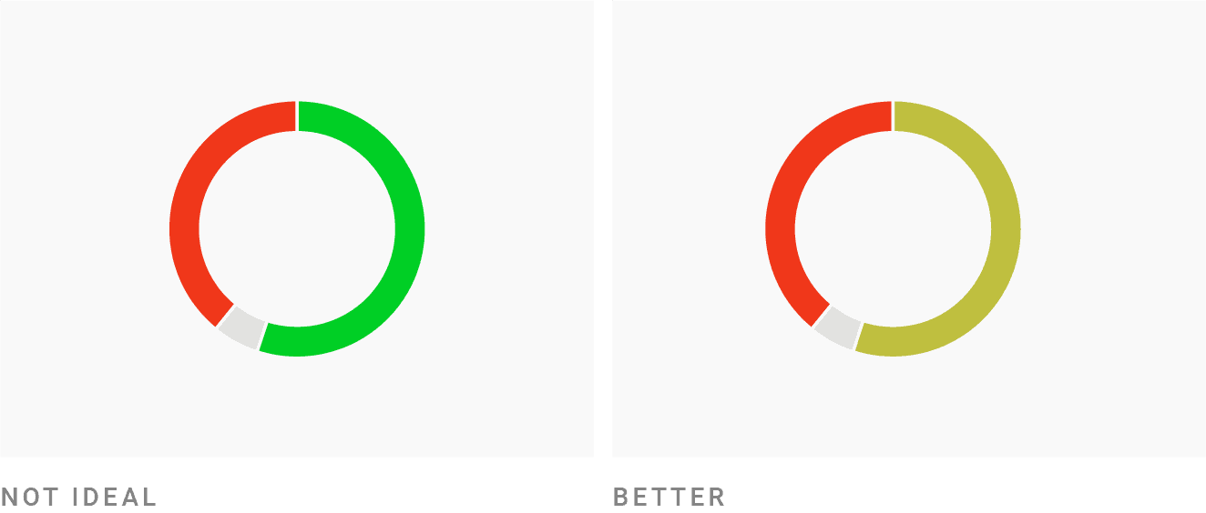Поэтому, используя зеленый цвет, добавьте в него немного желтого или синего. Вы можете увидеть это в примерах вверху этой статьи: все зеленые (кроме одного в примере FiveThirtyEight ⬤) имеют оттенок более 160°, то есть более синий ⬤⬤⬤, или менее 60°, то есть более желтый ⬤⬤. Надие использует и желто-зеленый, и сине-зеленый в этом проекте, который мы уже видели выше:
