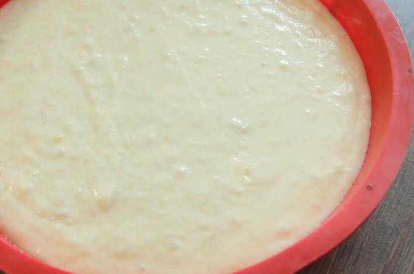 - Форму для выпечки обильно смажьте сливочным или растительным маслом и вылейте в нее тесто.