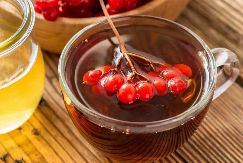 Если ребёнок температурит, необходимо помочь его организму быстрее вывести токсины. В этом поможет калиновое питьё. На стакан обычного чая добавляют 50–100 мл сока ягод (учитывая возраст). В качестве подсластителя кладут 1 ч. л. мёда или сахара. Питьё дают не реже 4 раз в сутки.
