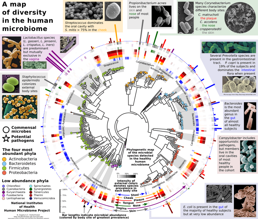 Микробиом не только не вредит здоровью, но и помогает его поддерживать. Конкуренция с патогенами и изменение состава нормальной микрофлоры могут не только быть результатом болезни, но и сами ведут к системным изменениям в организме . На «Биомолекуле» выходили подробные статьи про кишечную и кожную части микробиома: «Зоопарк в моем животе» , «Дом для бактерий, или что мы знаем о кожной микрофлоре» .