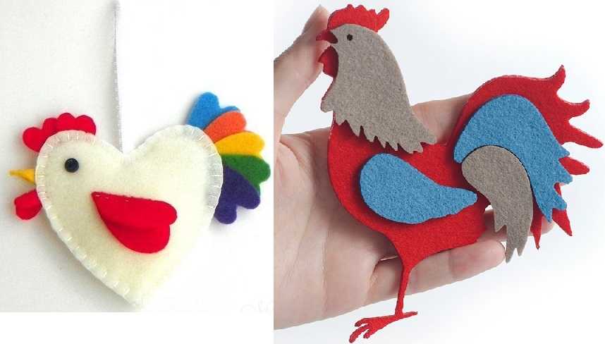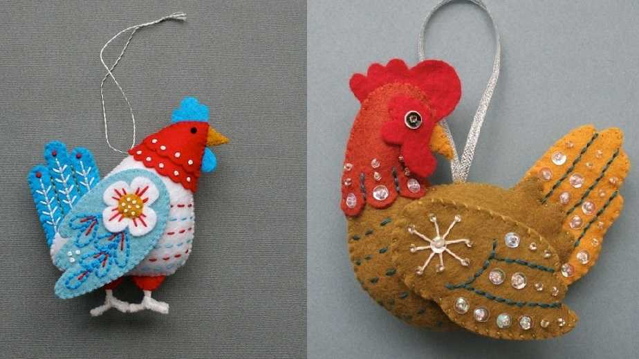 Курочка и петушок из фетра на новогоднюю елку![]()