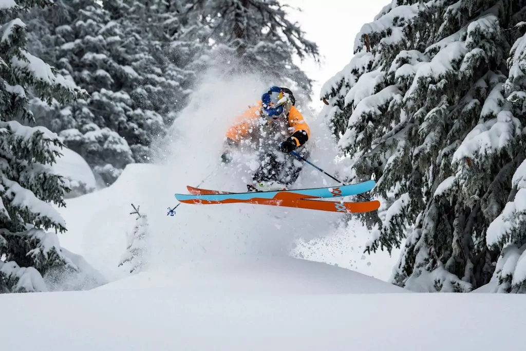 Модели курток и брюк, созданные для фрирайда очень технологичны, с минимальным набором карманов и деталей. В таких комплектах используется хорошая мембрана от производителя gore-tex, либо фирменные мембраны брендов. Мембрана обрабатывается жидкостью, которая отводит влагу, называется DWR. В горнолыжных костюмах для фрирайда крепкие проклееные швы, удобный крой, ведь фрирайдеры активно двигаются и часто ходят пешком в поисках снега. Преимущественно такие вещи покупают без утеплителя, чтобы самому регулировать слои одежды. Под курткой у фрирайдера обычно: термобелье, флиска и если очень холодно, как например часто бывает на курорте Шерегеш, поддевается тонкая пуховка, либо синтетическая куртка. Вещи создаются в ярких цветах, с удобным расположением карманов под рацию, лавинный датчик, телефон, gps и прочие полезные мелочи. Часто куртка и брюки из одного комплекта соединяются клепками или молнией для изоляции от снега. Крупные бренды: Norrona, Arcteryx, Salomon, Mammut, Marmot, Bergans, Haglofs, The North Face, Patagonia.