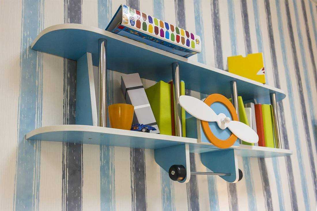 Ваш ребенок книголюб, и у вас много книг – тогда в комнате должны быть предусмотрены всевозможные полки: навесные, выдвижные, в форме машинок с кузовом и пр.; также можно поставить часть книг в шкафы.