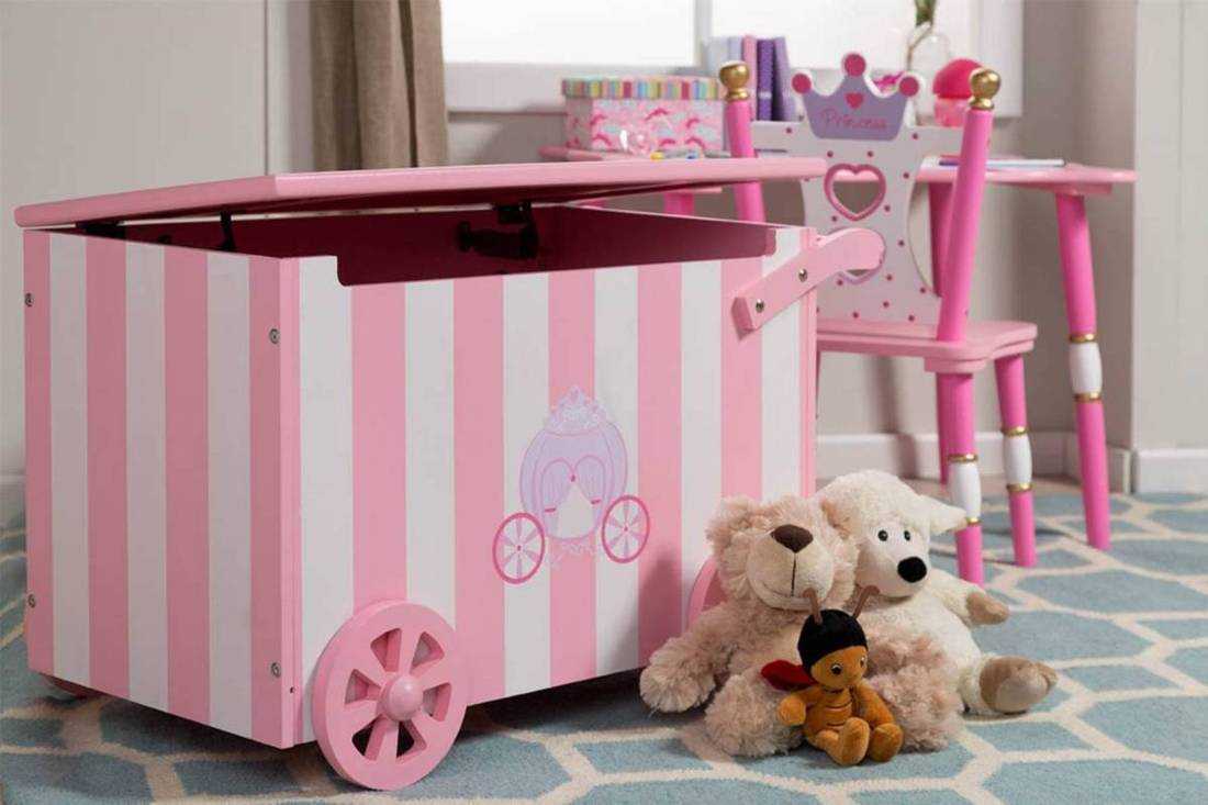 Если у вас дочка, разместите отдельно куклы, мягкие игрушки, одежду для кукол, домики Для этих целей подойдут плетеные корзинки, деревянные ящики в форме сундуков и пр.