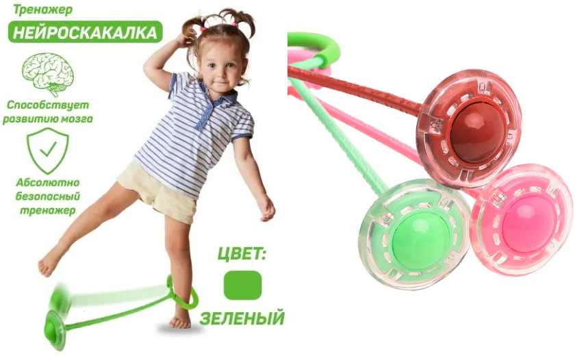 Это уже современный тренажер. Появился на рынке несколько лет назад. Выглядит как пластиковая палка, на одном конце которой петля для ноги, а на другом – утяжеленный круг. Суть в том, что ноги во время прыжков должны работать по-разному: одна нога должна вращать скакалку, а вторая перепрыгивать через нее. Многим детям нравится.